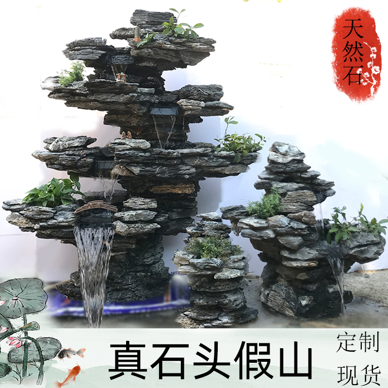 大型假山流水摆件庭院真石头造景花园阳台装饰喷泉招财英石盆景观