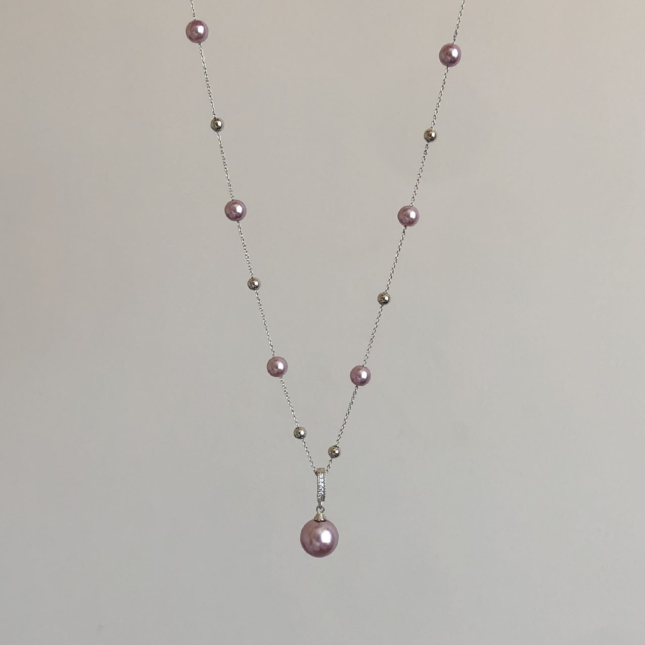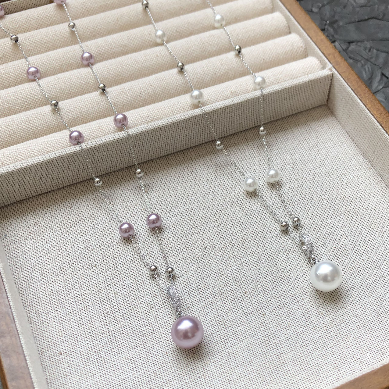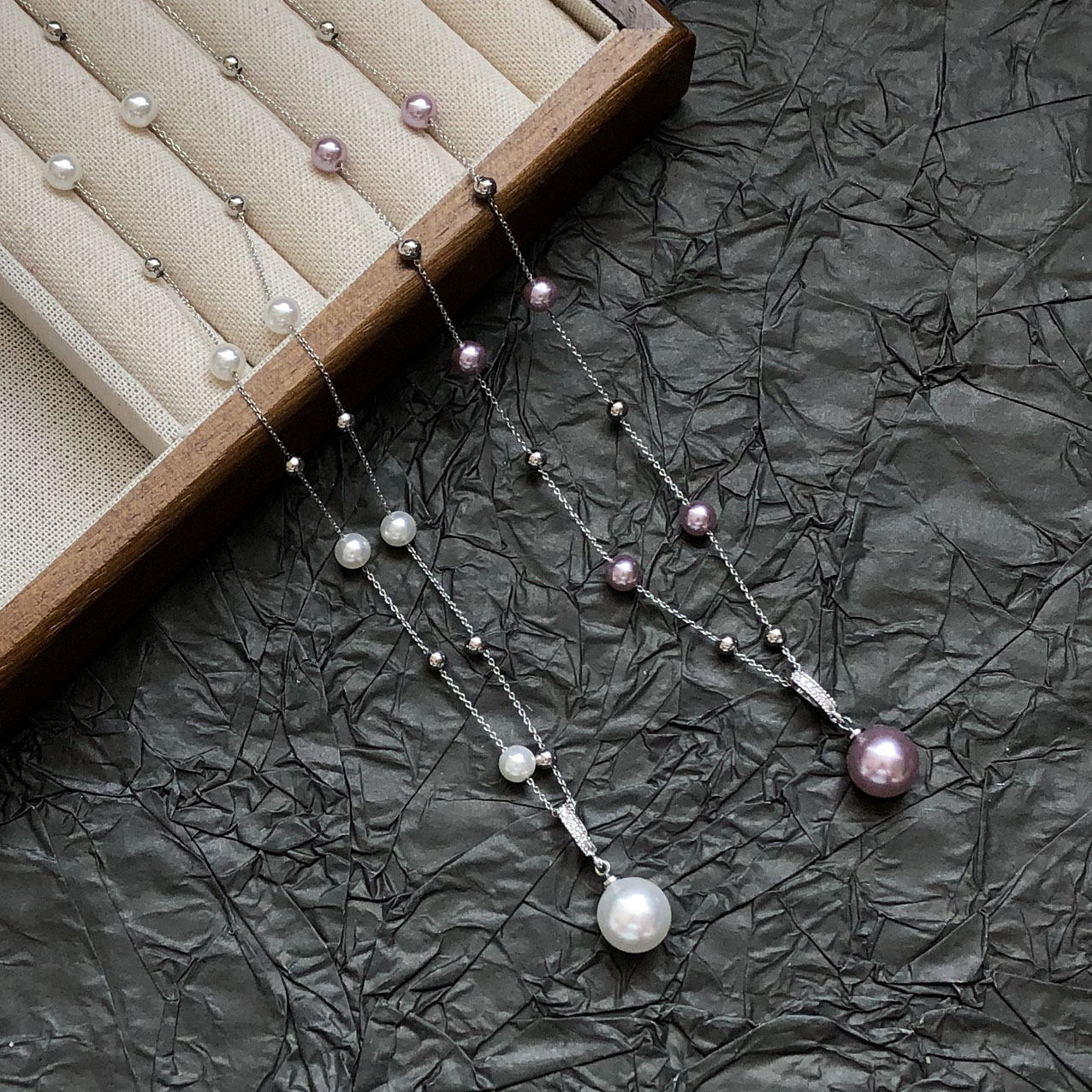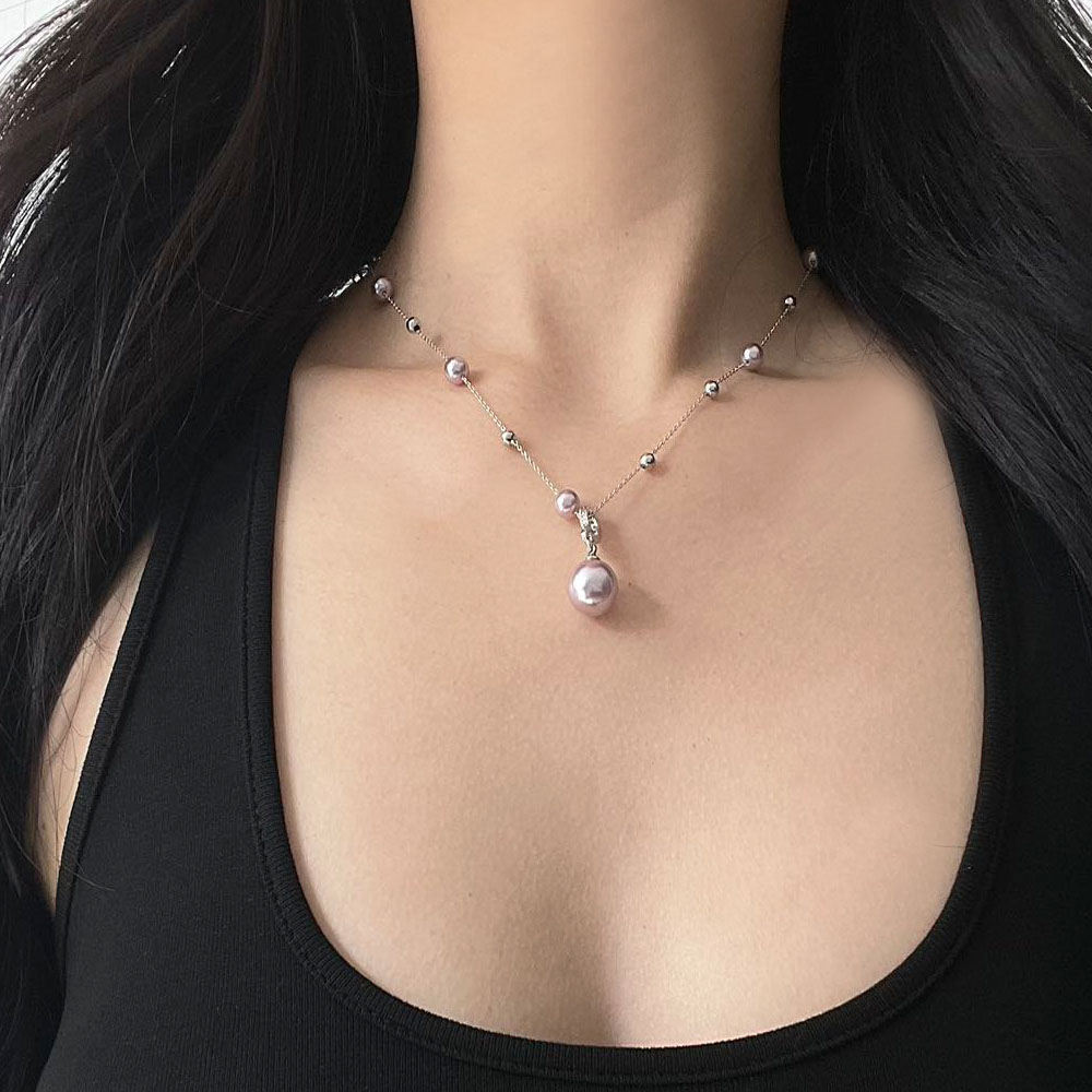 法式满天星紫色珍珠项链女轻奢高级感气质流苏锁骨链毛衣链女配饰