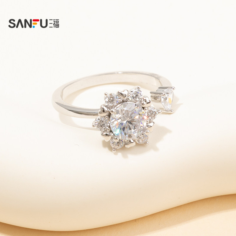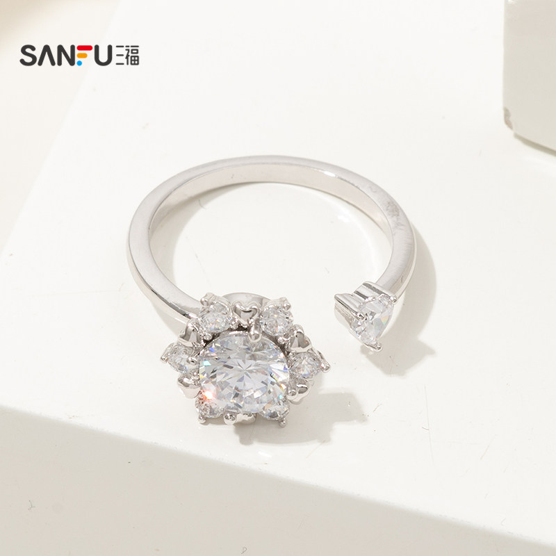 三福都市旋转雪花指环戒指单只 时尚设计感小众首饰配饰851093