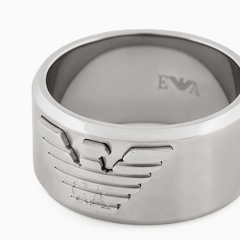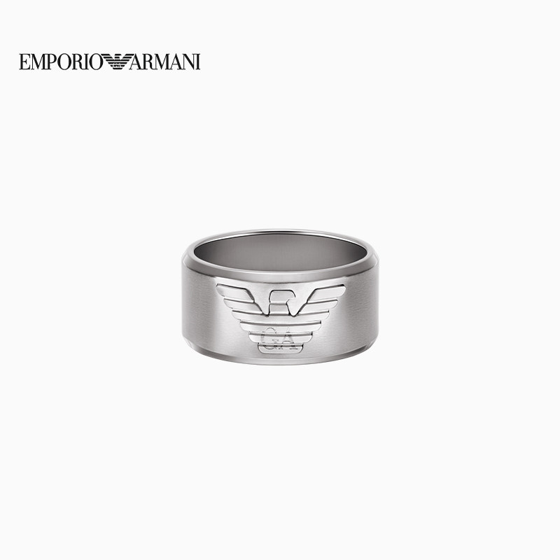 【圣诞礼物】EMPORIO ARMANI/阿玛尼春夏男钢质拉丝素圈鹰标戒指