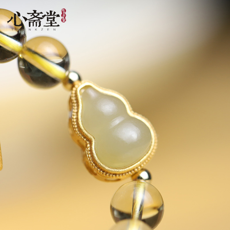 心斋堂【吸财葫芦】原创天然黄水晶手串和田玉葫芦手链男女款饰品