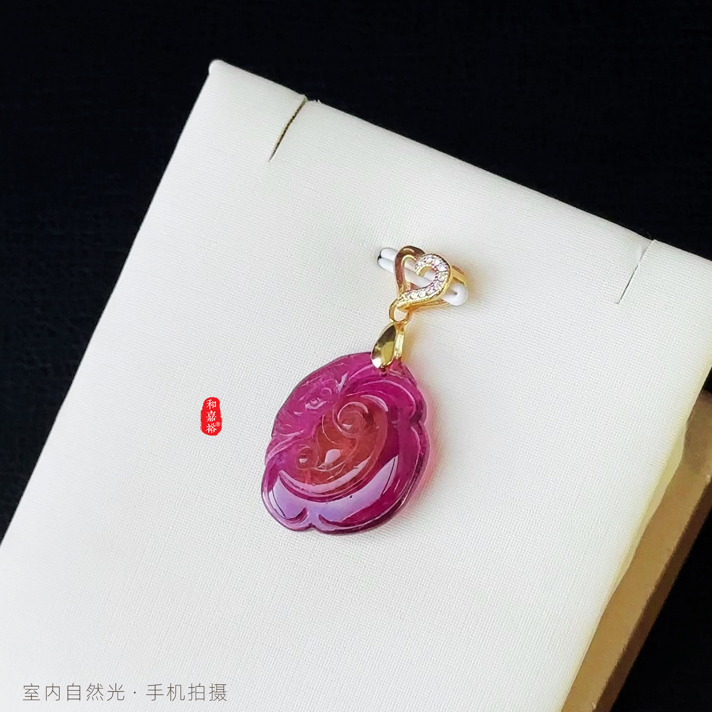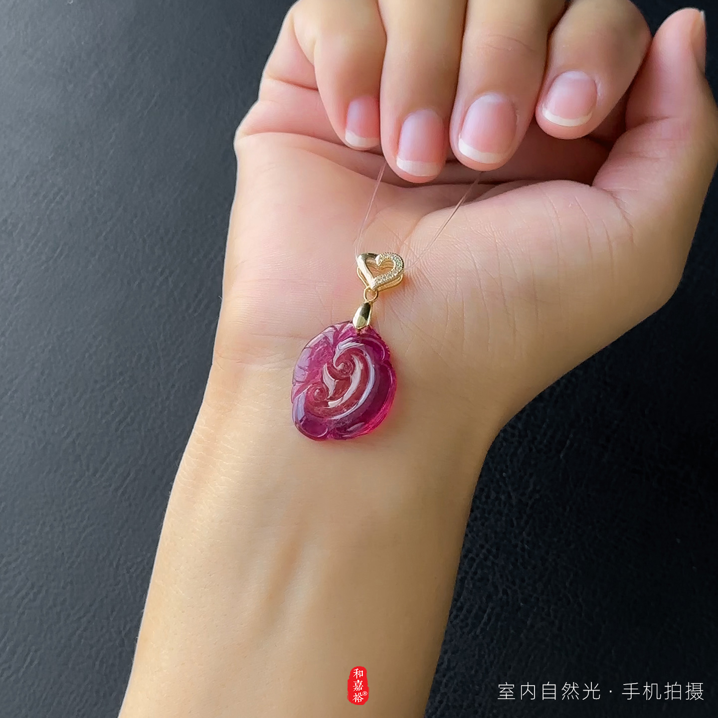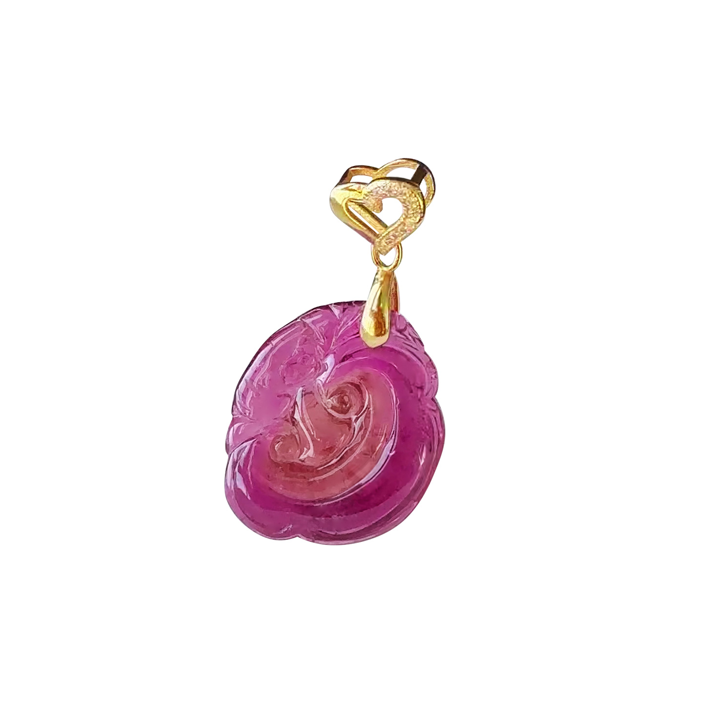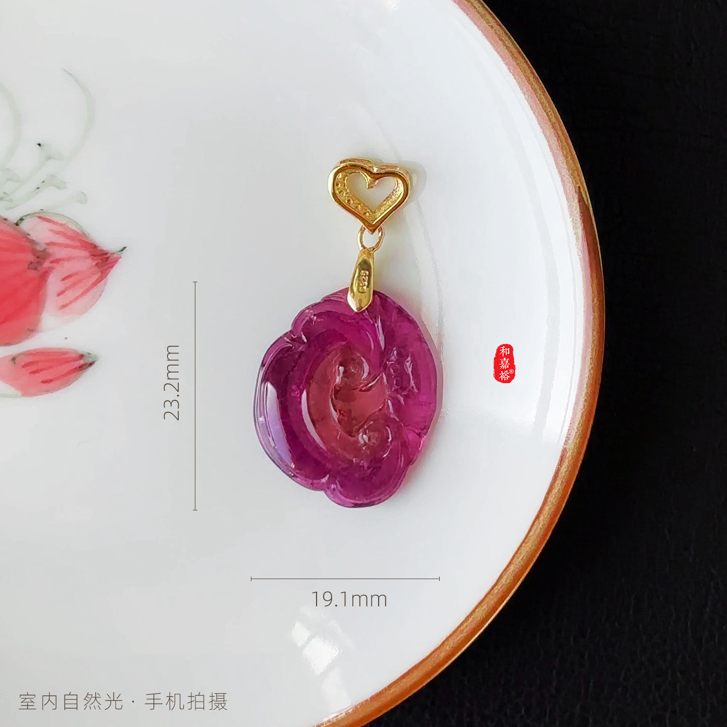 和嘉裕天然高透西瓜粉碧玺吊坠精致如意蝙蝠双面雕刻轻奢国风首饰