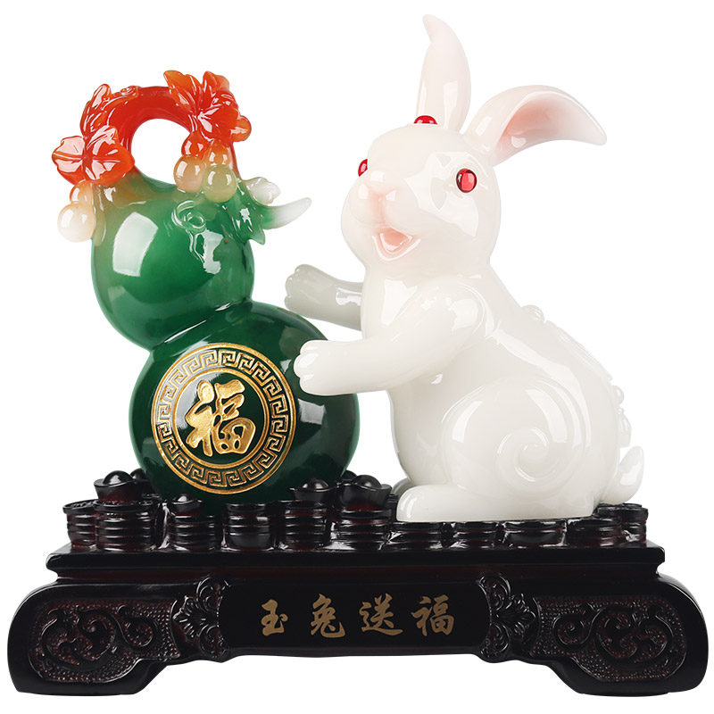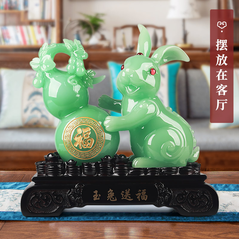 玉兔送福葫芦摆件客厅玄关酒柜y家居乔迁新房子装饰品兔子新年礼