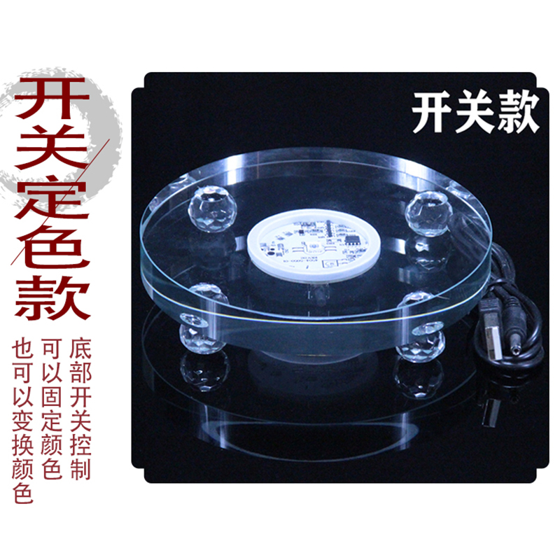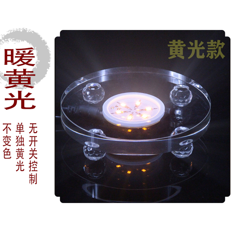 水晶底座圆形托底精品展示台七彩变色遥控黄光定色佛堂像供灯定制