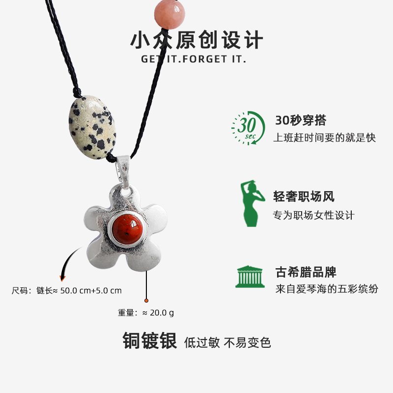 【自营】VITARING项链女编制花朵锁骨链小众设计复古天然石颈链