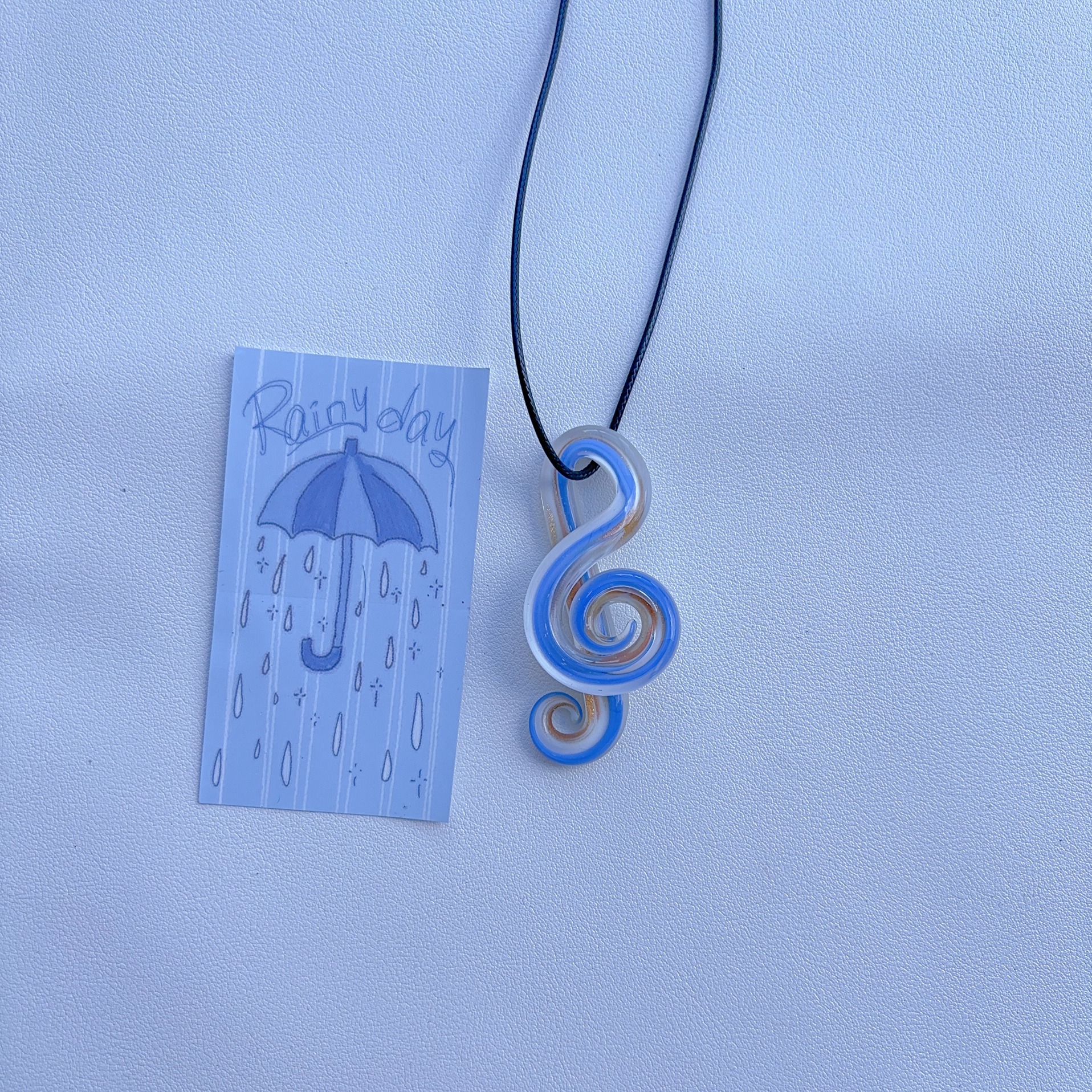 K6 蓝色项链琉璃项链设计感项链彩色项链皮绳长项链y2k琉璃吊坠女