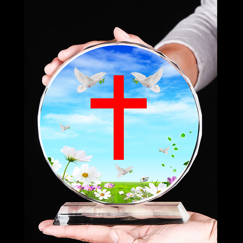 水晶红色十字架北欧家居用品家用摆件 简约大气十字桌面结婚礼物