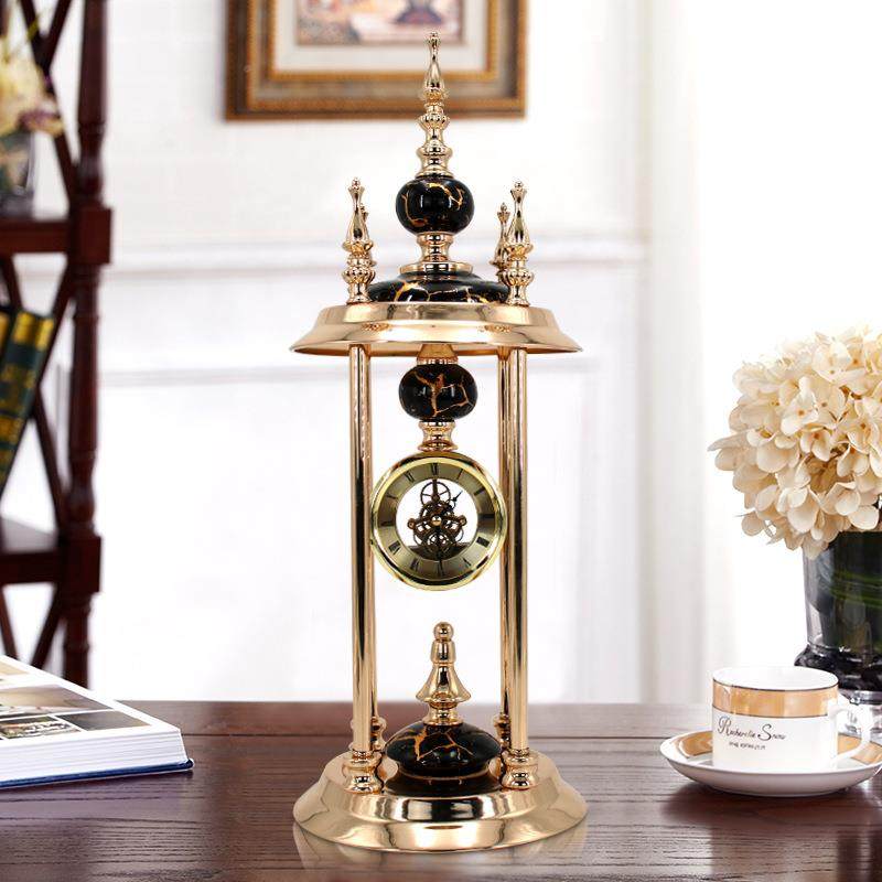 新款美式钟摆件轻座奢北欧式时档钟家件居客厅装饰品摆高台91107