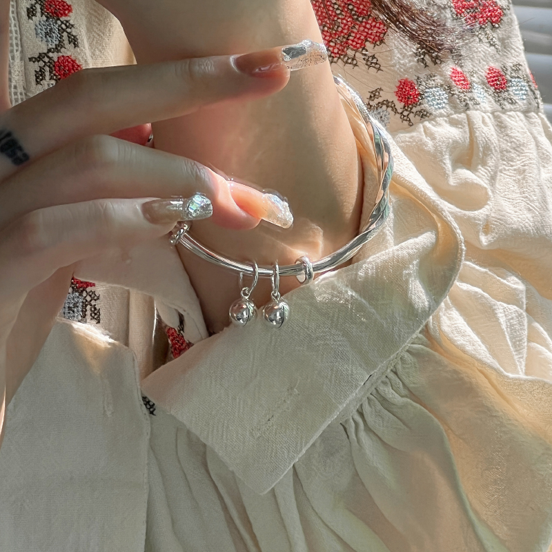 一十七手作 实心999足银不褪色莫比乌斯环一步一响推拉纯银手镯女