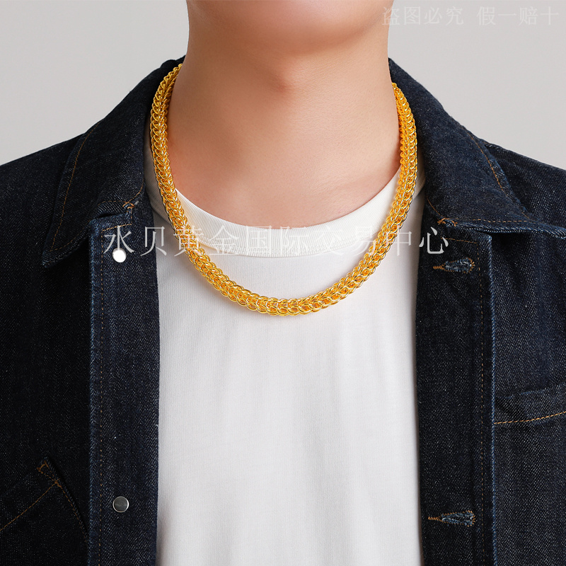 黄金灯笼项链男足金999粗款老板链子真金包银项链送男友老公礼物