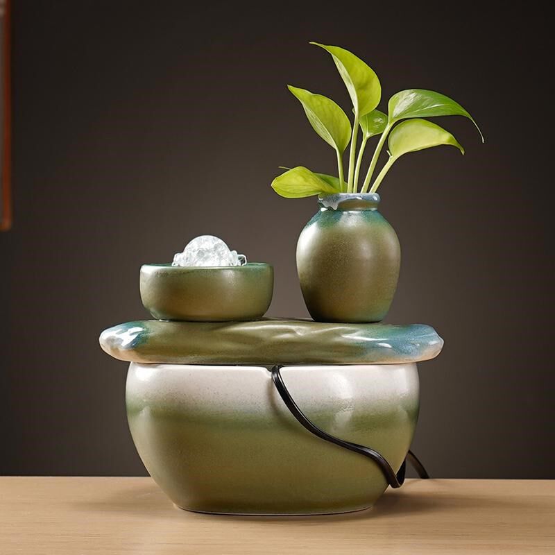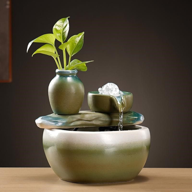 财源滚滚小型流水摆件循环水生财陶瓷桌面装饰客厅玄关古法鱼缸