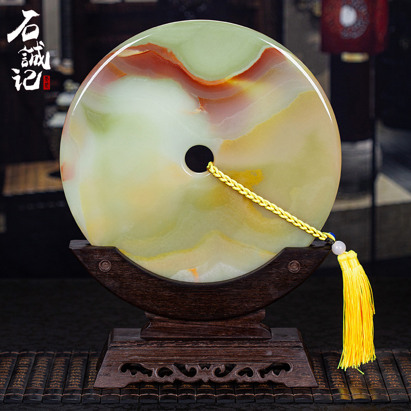 石诚记古青玉石平安扣摆件乔迁送礼品中式客厅玄关博古架家居饰品