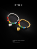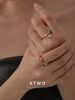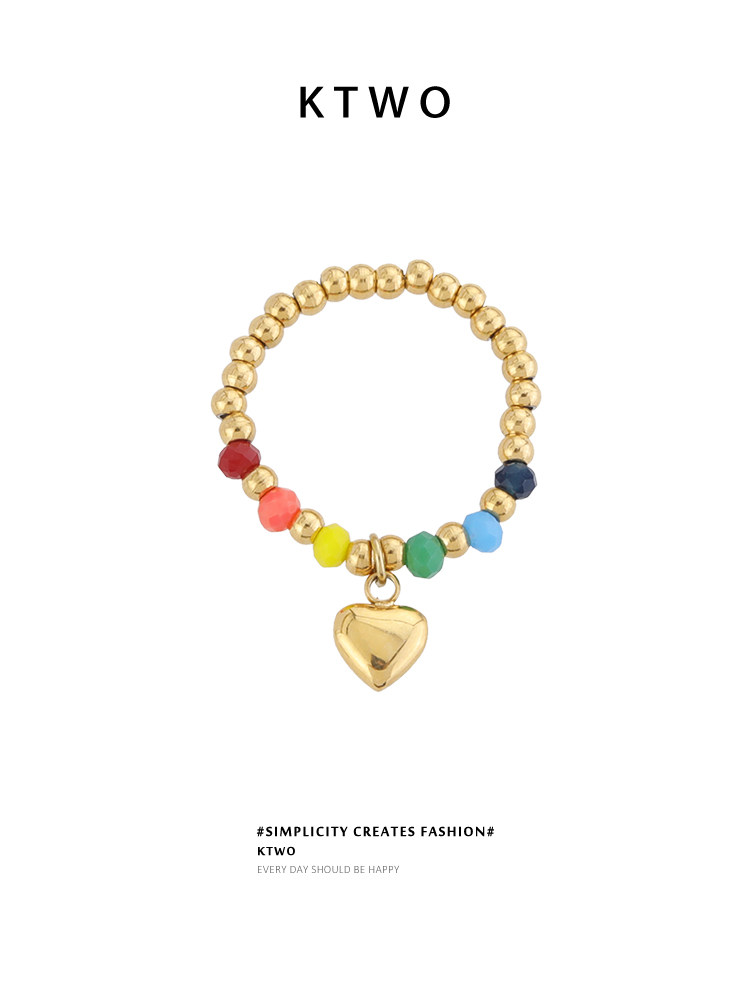 彩色多巴胺戒指少女小众设计感镀18k金爱心食指戒笑脸闺蜜戒饰品
