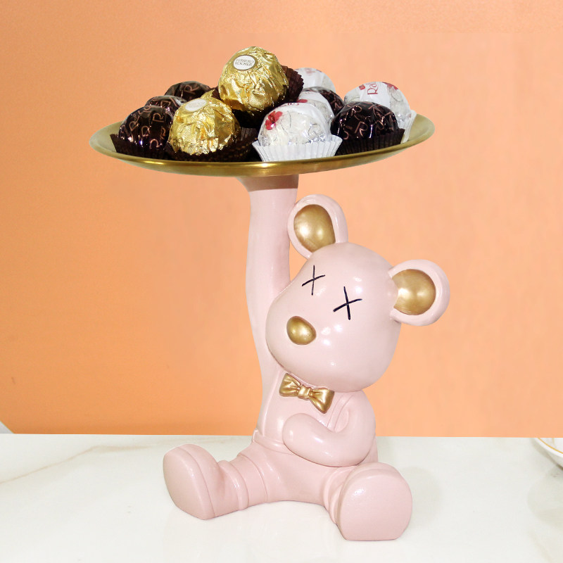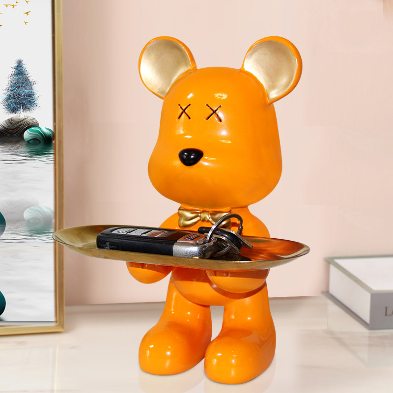 轻奢高级感暴力熊钥匙收纳玄关摆件托盘家装家居饰品创意乔迁礼品