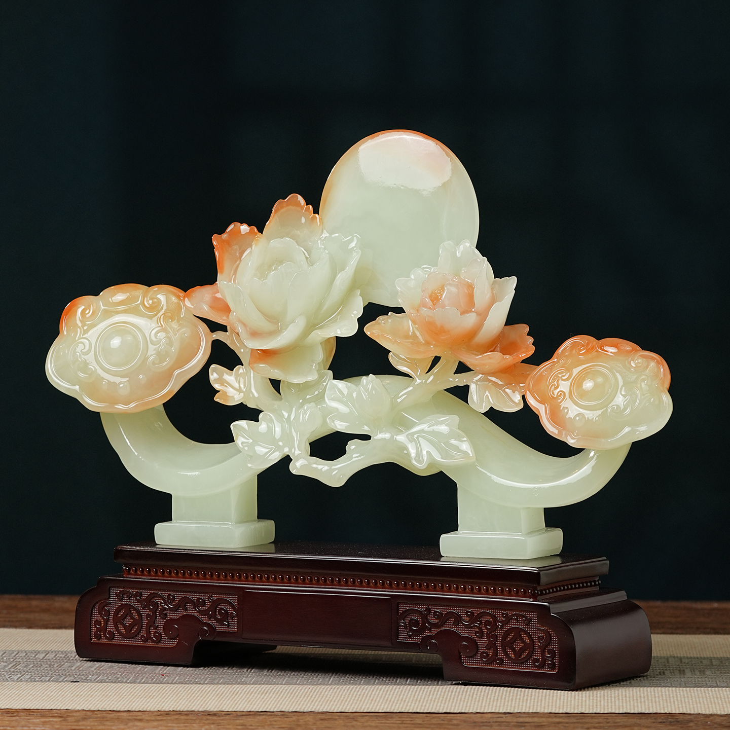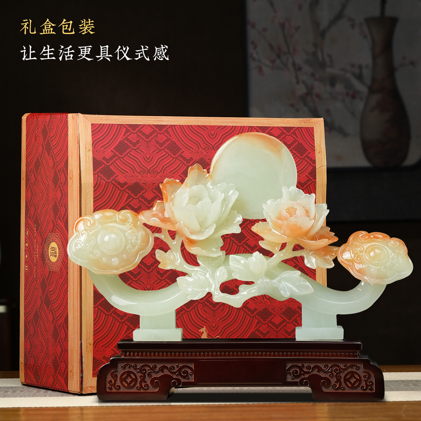 富贵如意摆件玉石招财客厅玄关电视柜酒柜装饰品高档乔迁新居礼物