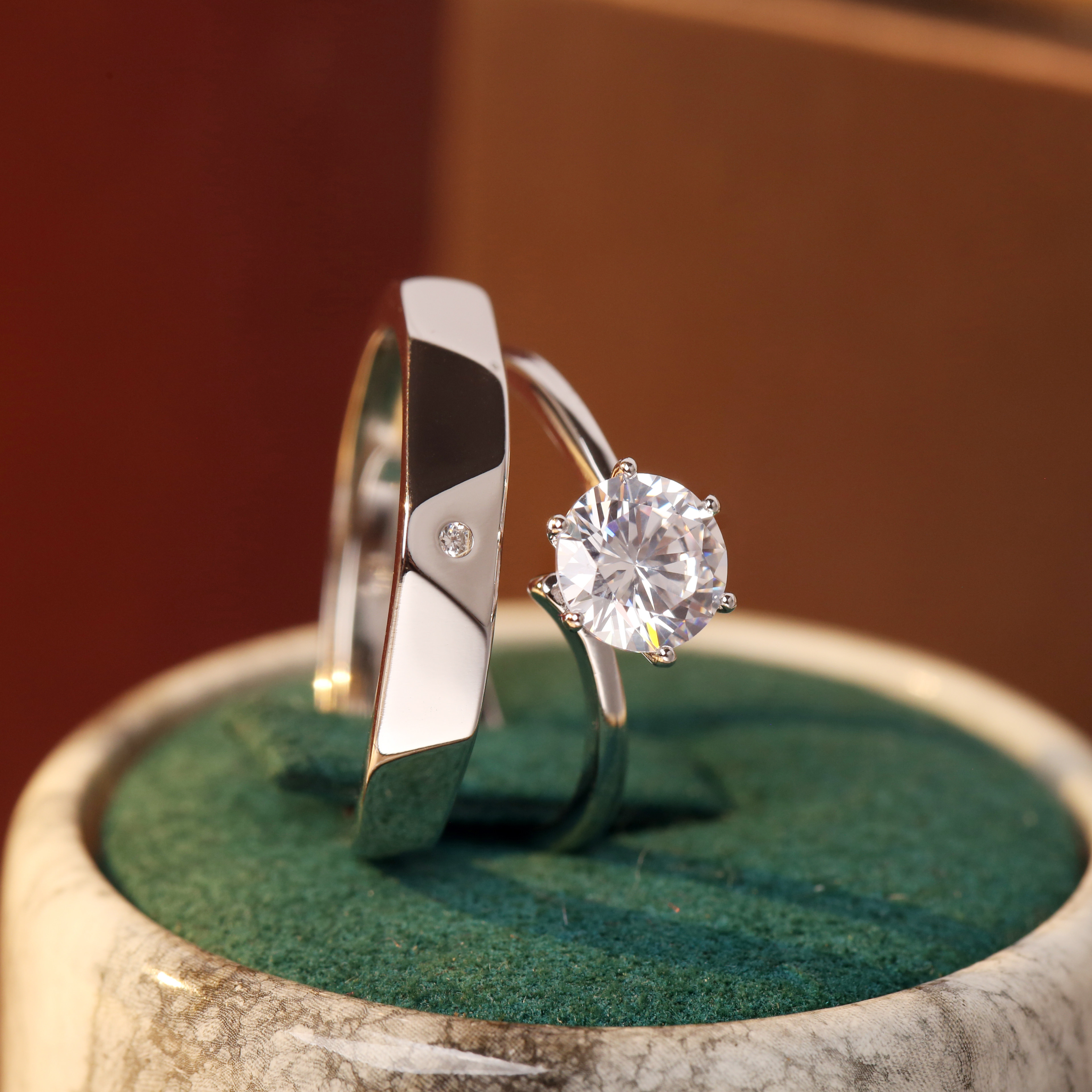 一克拉扭臂单钻六爪仿真钻戒情侣结婚对戒网红活口戒指婚礼用道具