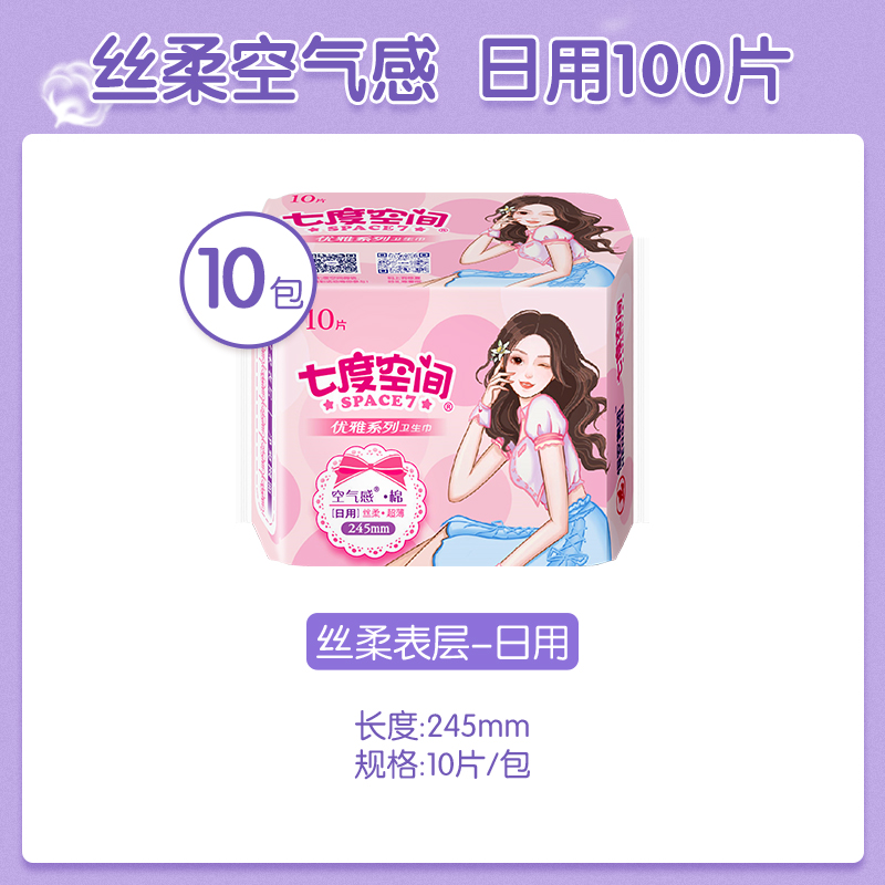 七度空间卫生巾日用整箱优雅系列超薄姨妈巾空气感官方旗舰店正品