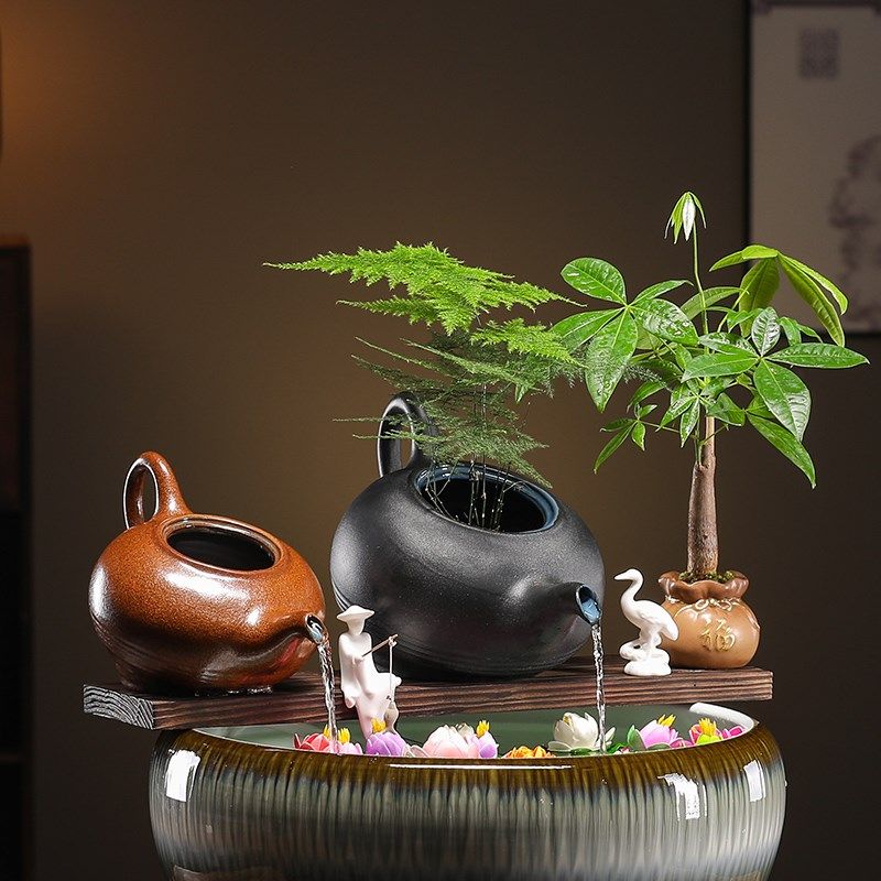 简约现代循环流水器陶瓷茶壶配件庭院水缸小造景搭配流水口装饰品