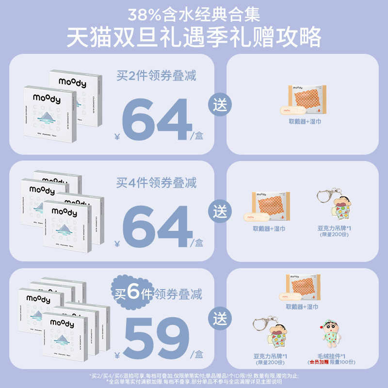 moody美瞳日抛经典38%低含水新手长戴胶片棕彩色隐形眼镜10片