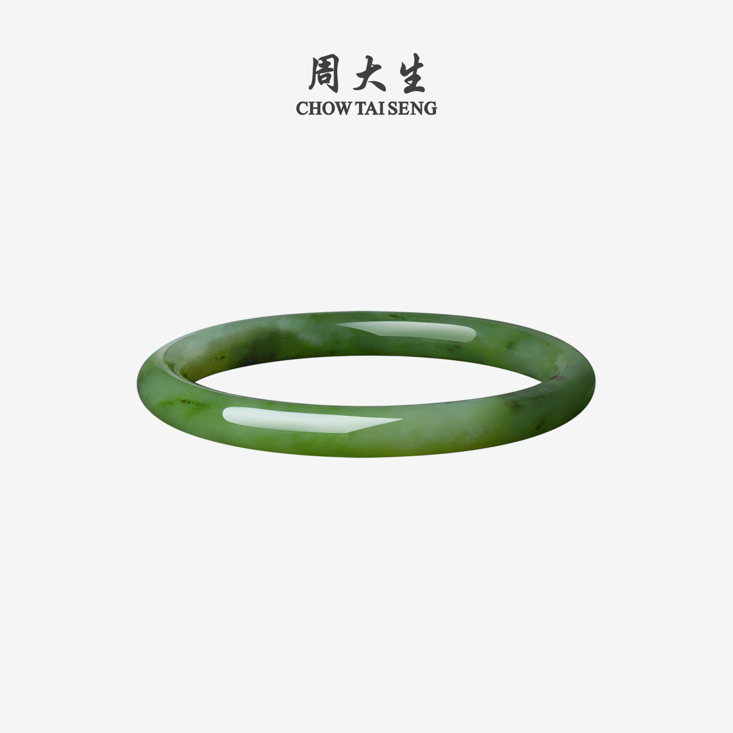 【圣诞礼物】周大生和田玉手镯女碧玉翠浓玉镯子圆条细镯生日礼物