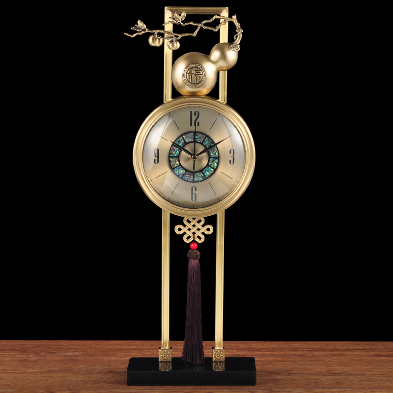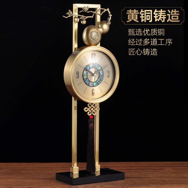 新中式黄铜座钟客厅家用台式葫芦装饰坐时钟表客厅书房桌面装