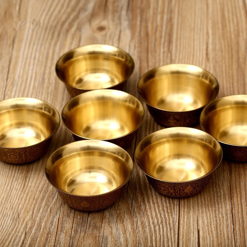 藏传纯铜八吉祥供水碗供水杯圣水杯佛前供碗雕刻纯铜水碗大小可选