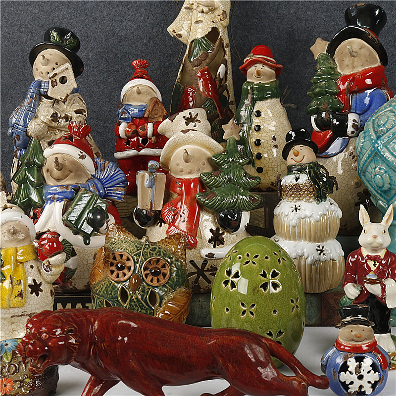 美式复古怀旧陶瓷动物人物圣诞老人摆件家居客厅玄关桌面装饰摆设