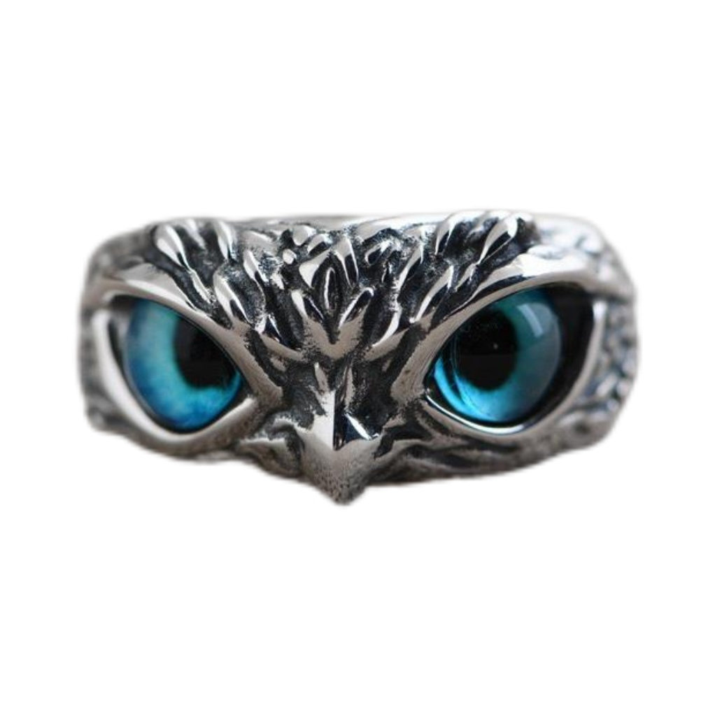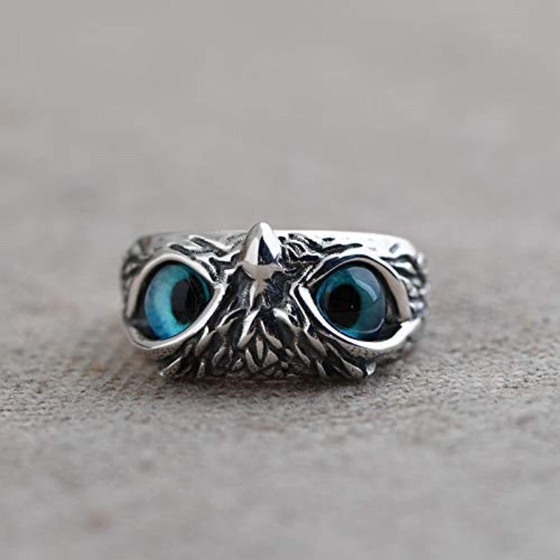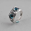 创意ins猫头鹰转运霸气戒指男女款士复古蓝色眼睛可调节开口指环