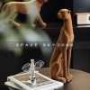 现代样板间卧室床头柜植绒金钱豹摆件不规则灰色棕色玻璃花瓶插花
