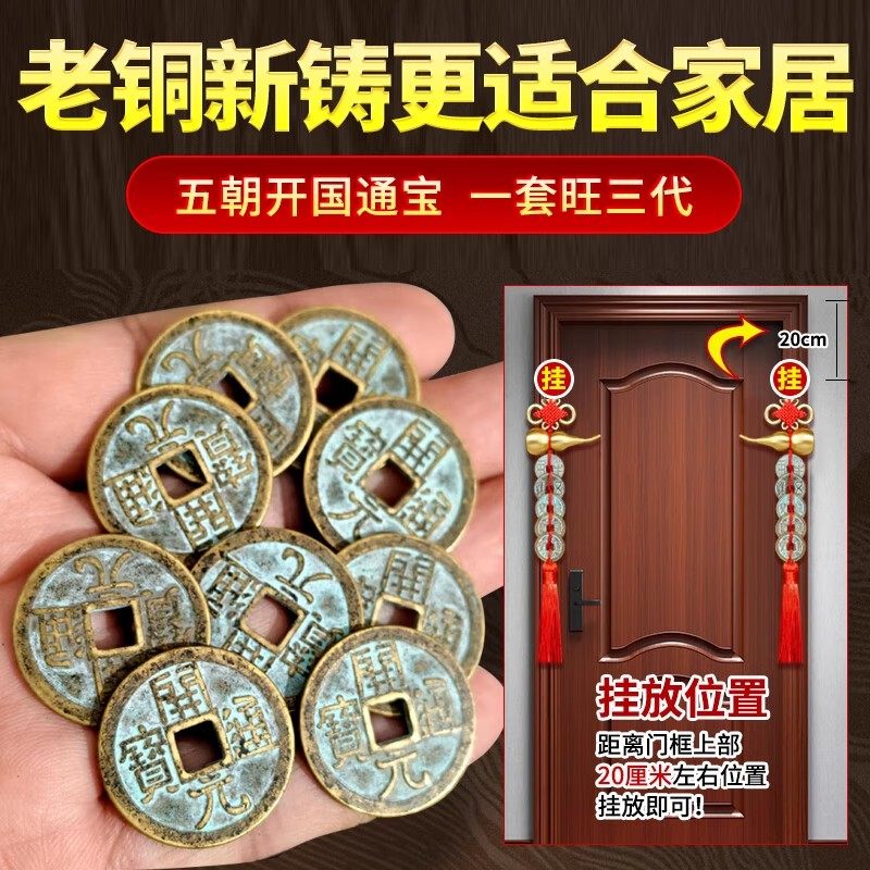 秦汉唐宋明中华大五帝钱挂件真品门对门压门槛纯铜铜钱大门口卧室