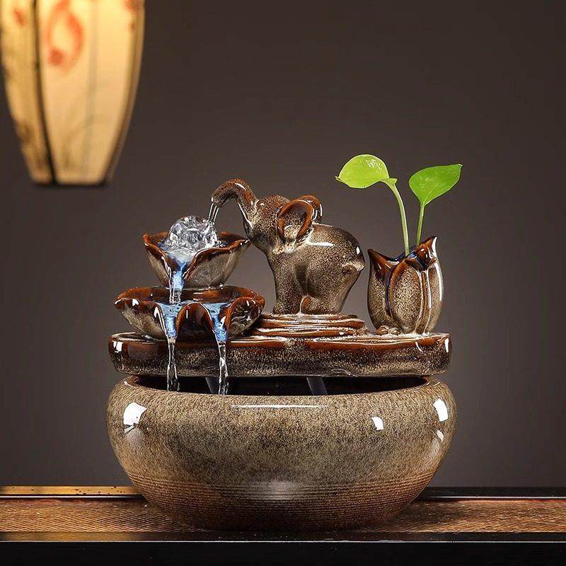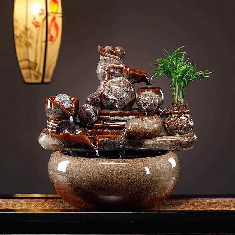 中式陶瓷招财循环流水摆件客厅创意喷泉瀑布水景鱼缸乔迁开 业送