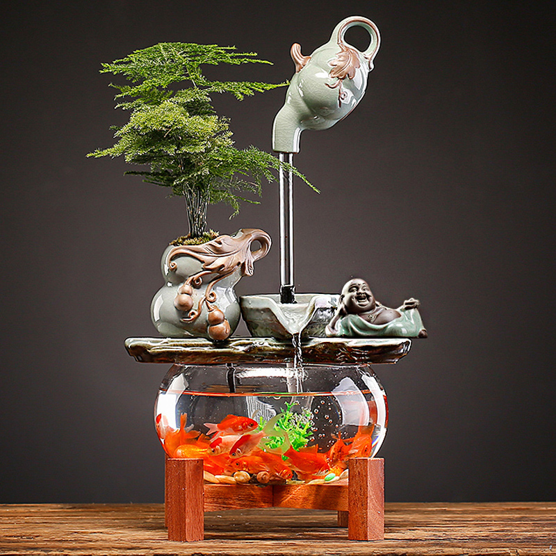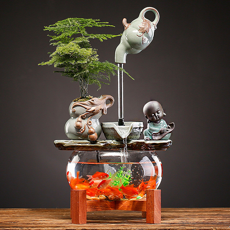 鱼缸流水摆件循环水家居客厅养鱼创意办公室桌面装饰品开业礼物