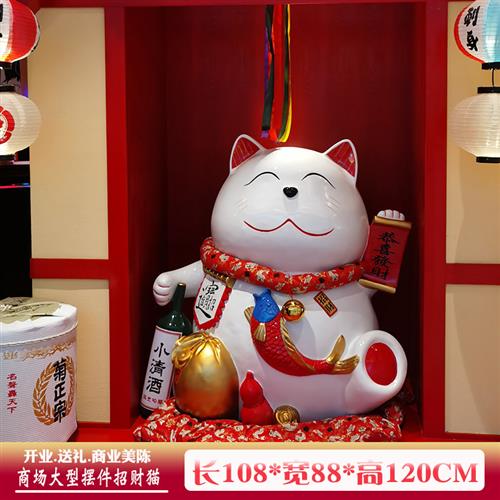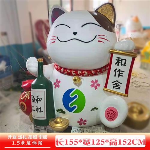 玻璃钢招财猫雕塑日本料理烤肉店吉祥物大型商场日式网红拍照摆件