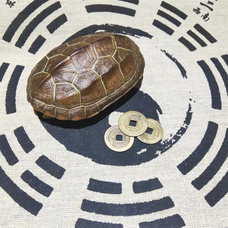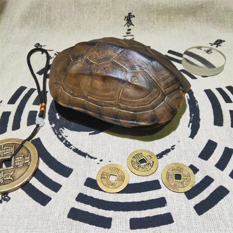 真乌龟壳精品天然完整六爻龟甲文玩摆件清乾隆通宝真品后天八卦图