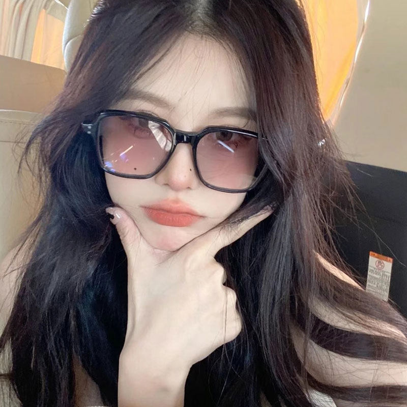 黑框茶色墨镜女网红韩版潮粉色防紫外线橘黄色太阳镜男女可配近视