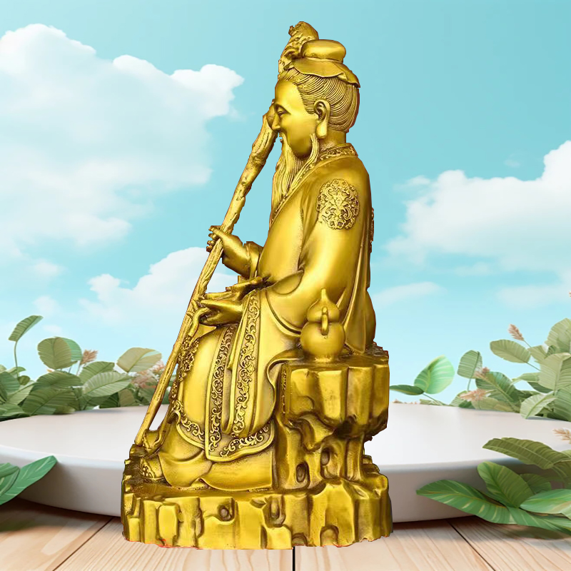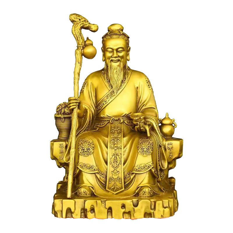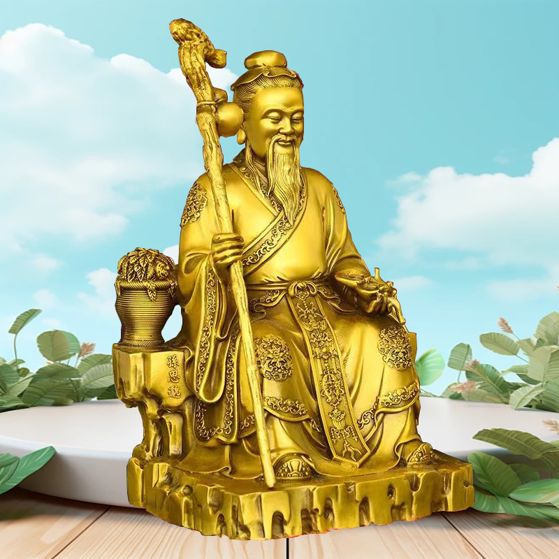 纯黄铜药王孙思邈坐像摆件居家中医药馆供奉名医托葫芦药王菩萨铜
