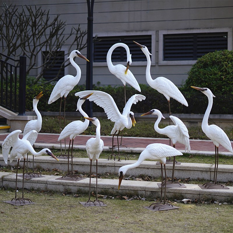户外仿真b白鹭摆件玻璃钢园林水景雕塑玻璃钢庭院假山草地鸟类装