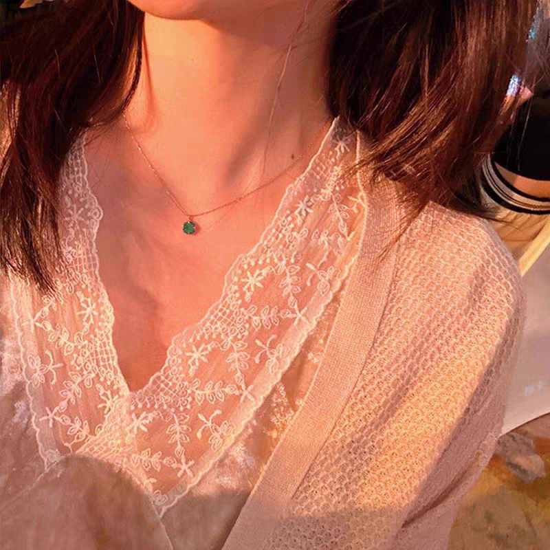 绿色小方糖项链女轻奢小众高级感锁骨链气质时尚精致日常通勤配饰