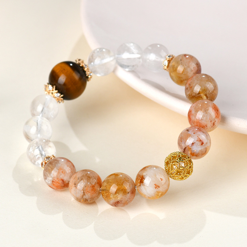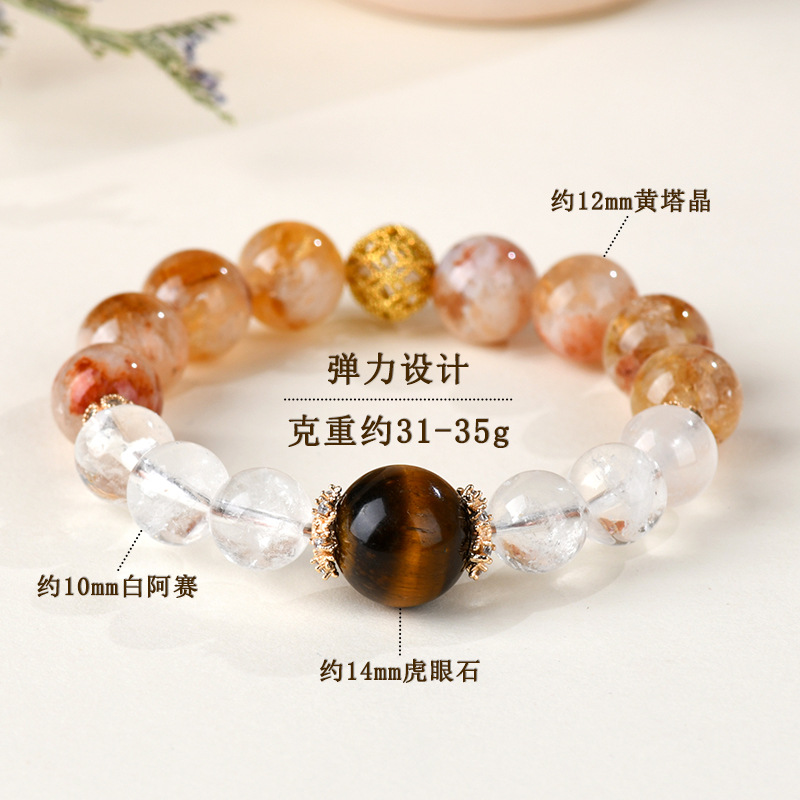 天然水晶黄塔晶虎眼石白阿赛手链大颗粒原创时尚女款热销手串