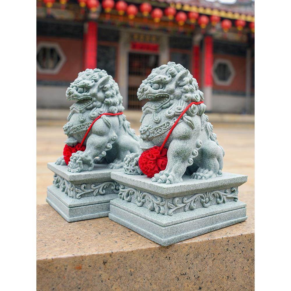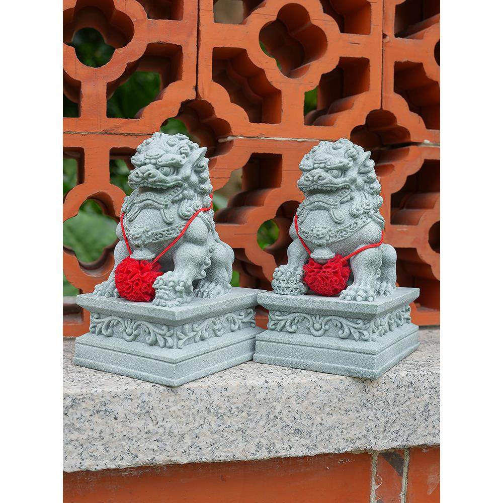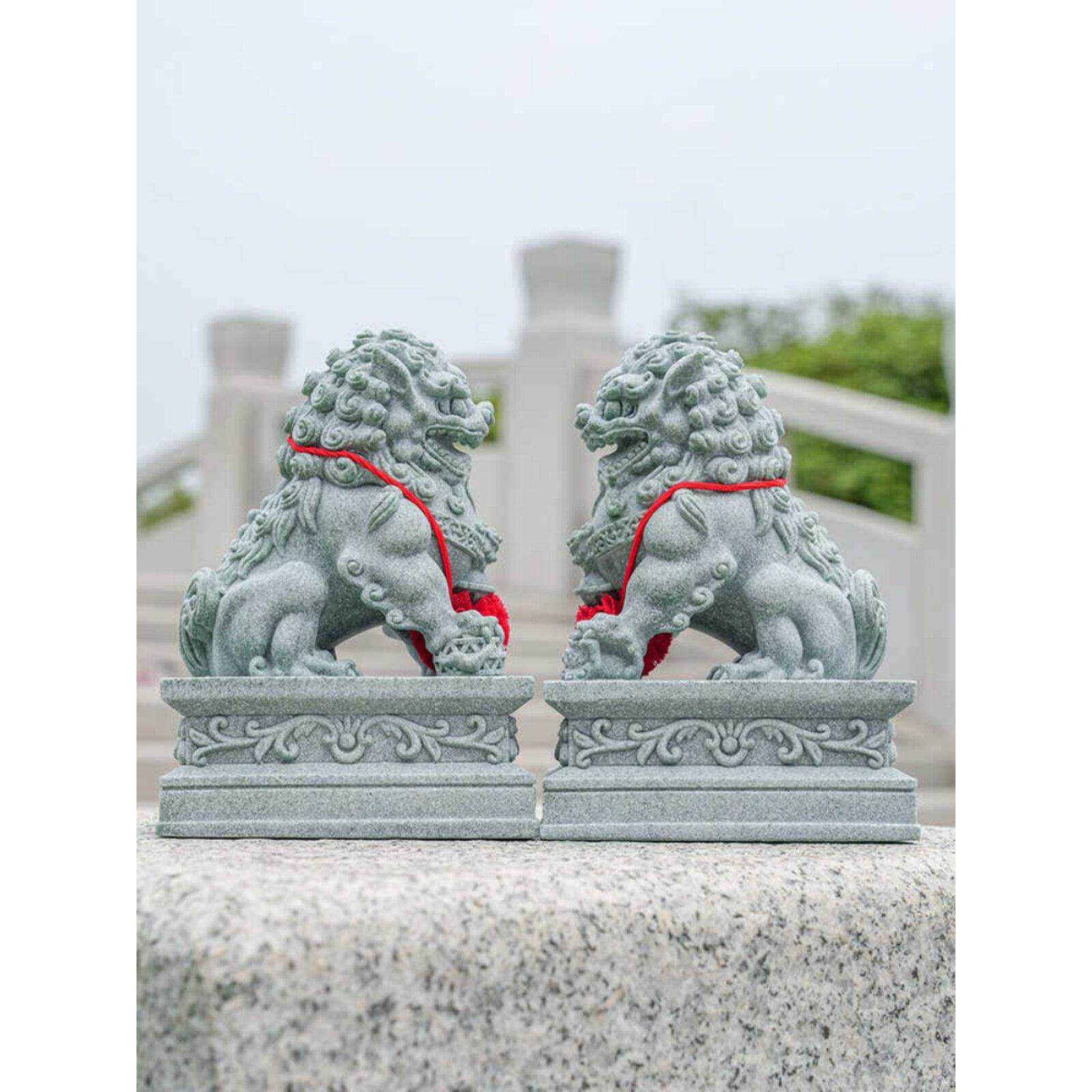 中式招财石狮子一对镇宅家用摆件鱼缸造景桌面家居装饰青石石狮子
