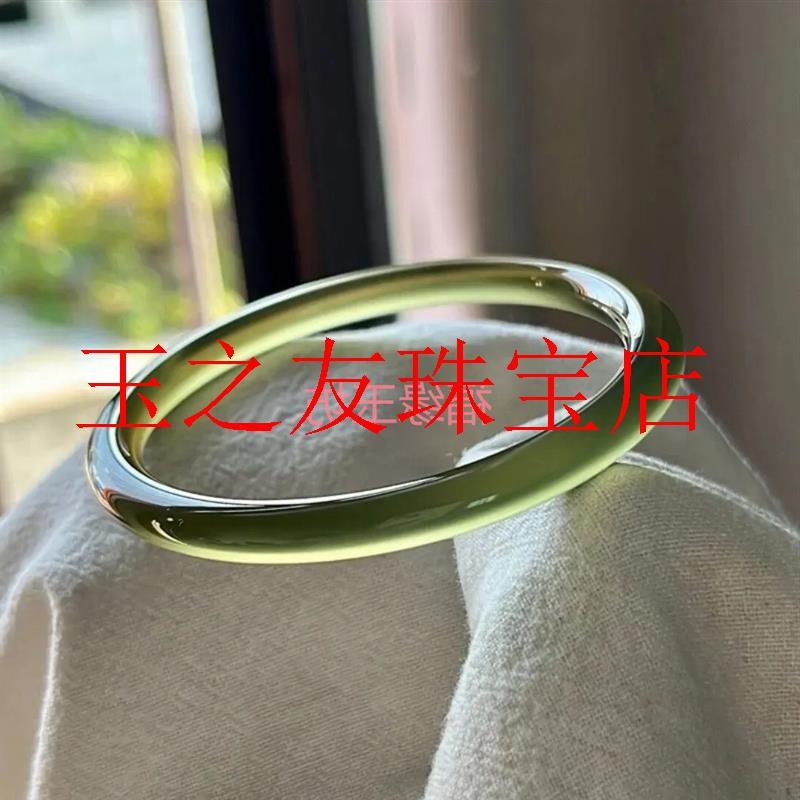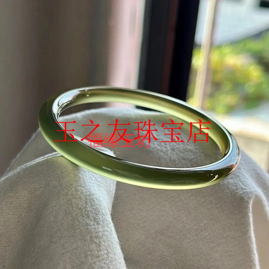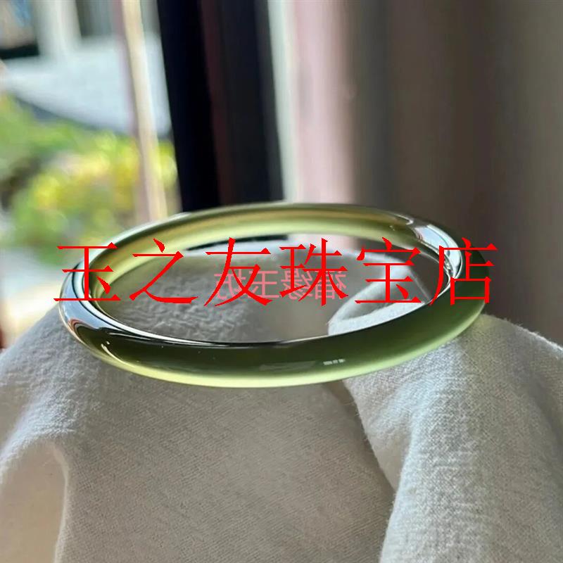 精品玛瑙手镯苦茶冰玉髓青绿色高冰透玉镯细腻油润浅绿细圆条女款