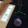 醒走原创定制 天然老料黑舒俱来皇家紫黑色雕刻圆牌福字麒麟项链