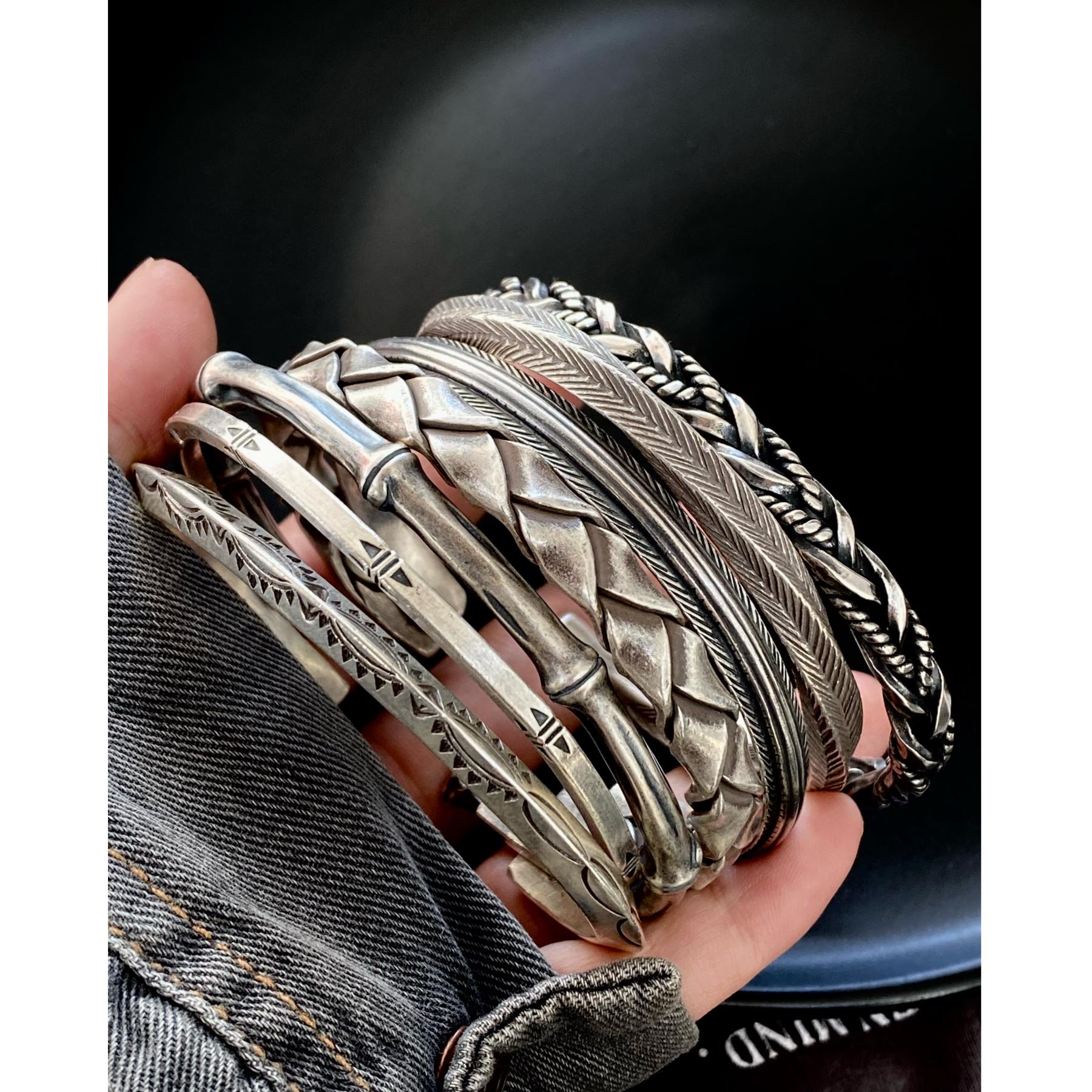 不同银匠 复古手作925纯银印第安图腾麻花编织莫比乌斯环开口手镯