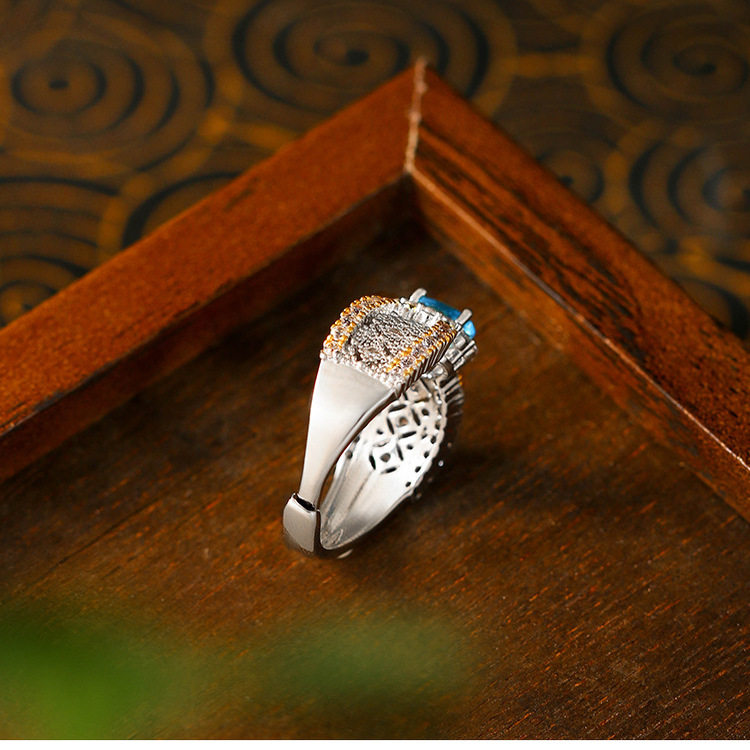 意大利宫廷风织纹雕金蕾丝花边双色金镶钻祖母绿彩宝布拉提戒指