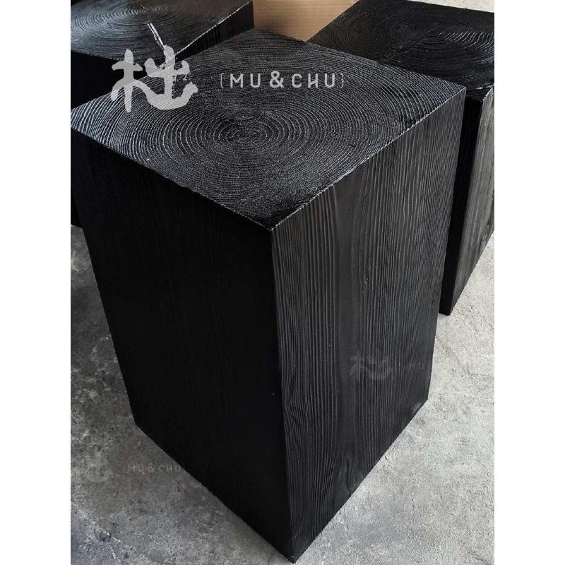 木出侘寂|碳化黑色实木墩子雕塑底座民宿树桩创意家用矮凳边角几