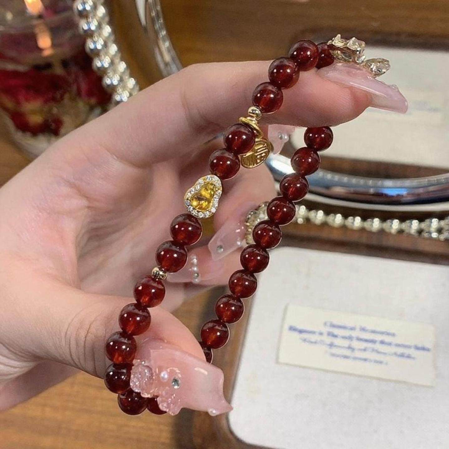 石榴石手串水晶葫芦手链红色手钏新中式天然小众设计本命年首饰