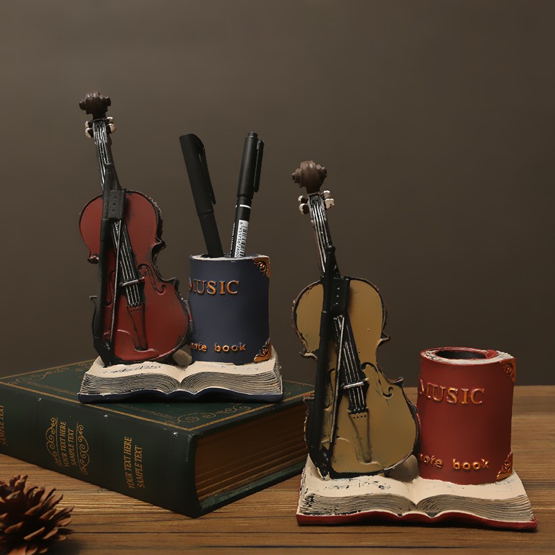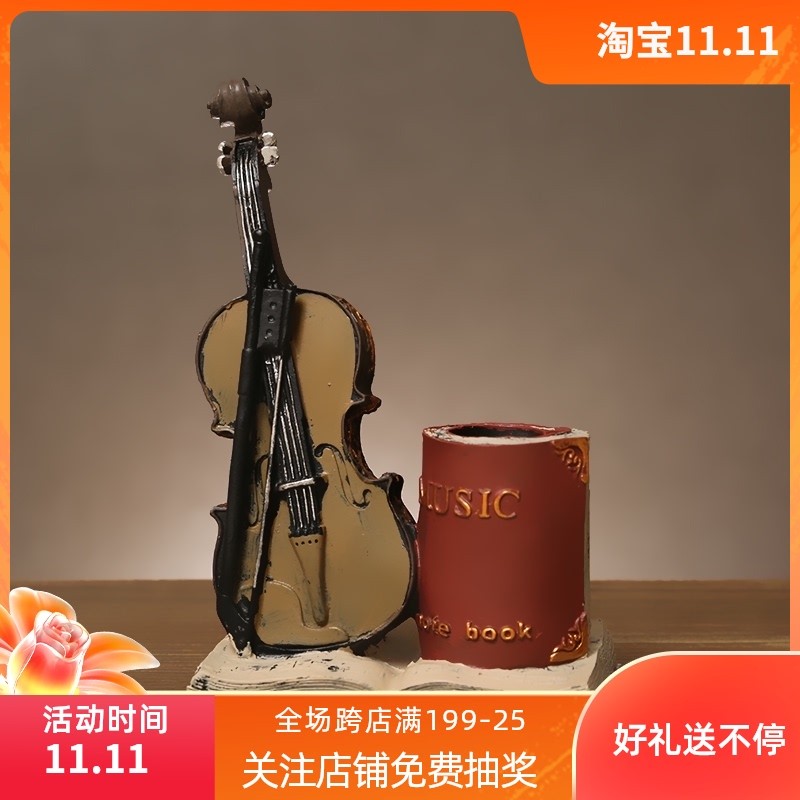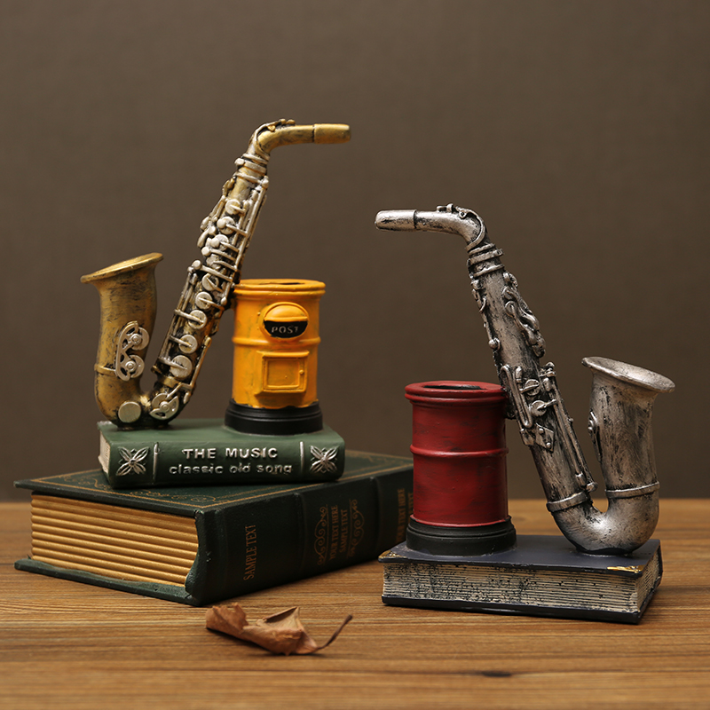 复古创意轻奢萨克斯小提琴笔筒摆件模型书房桌面装饰品艺术品摆设