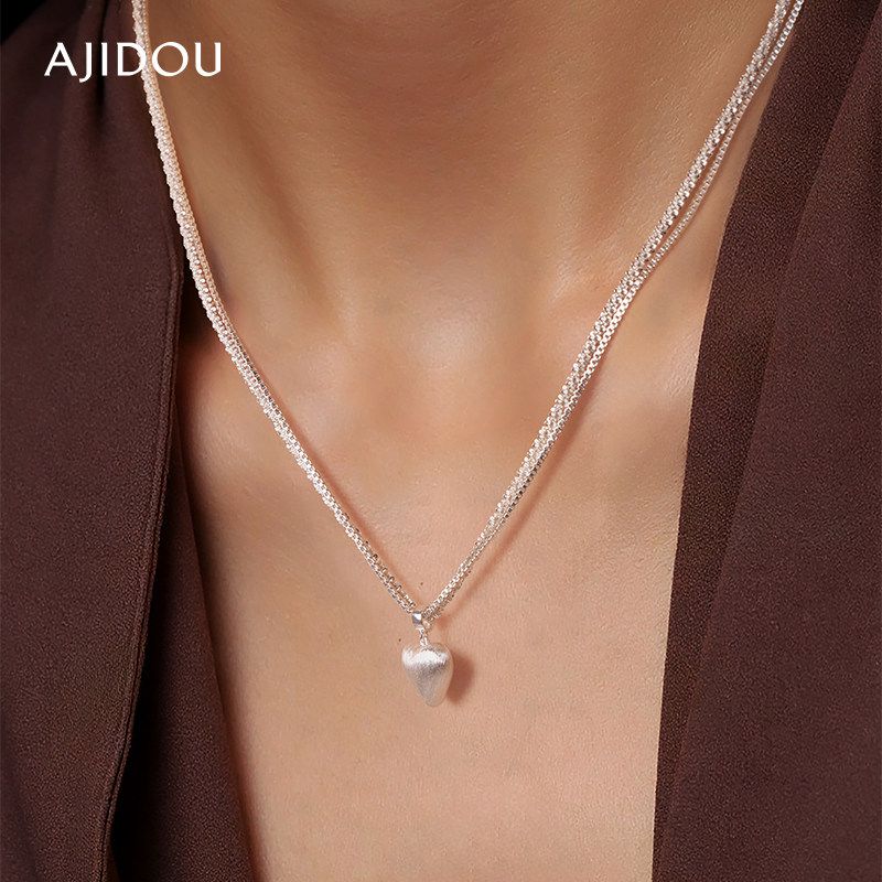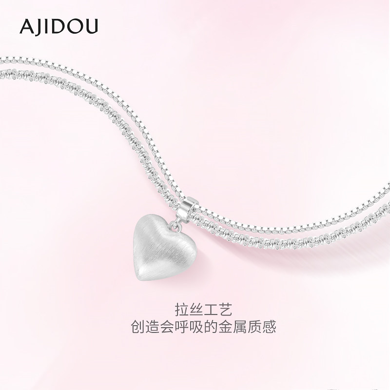 阿吉豆AJIDOU叠戴爱心项链女休闲时尚饰品小众轻奢设计首饰锁骨链