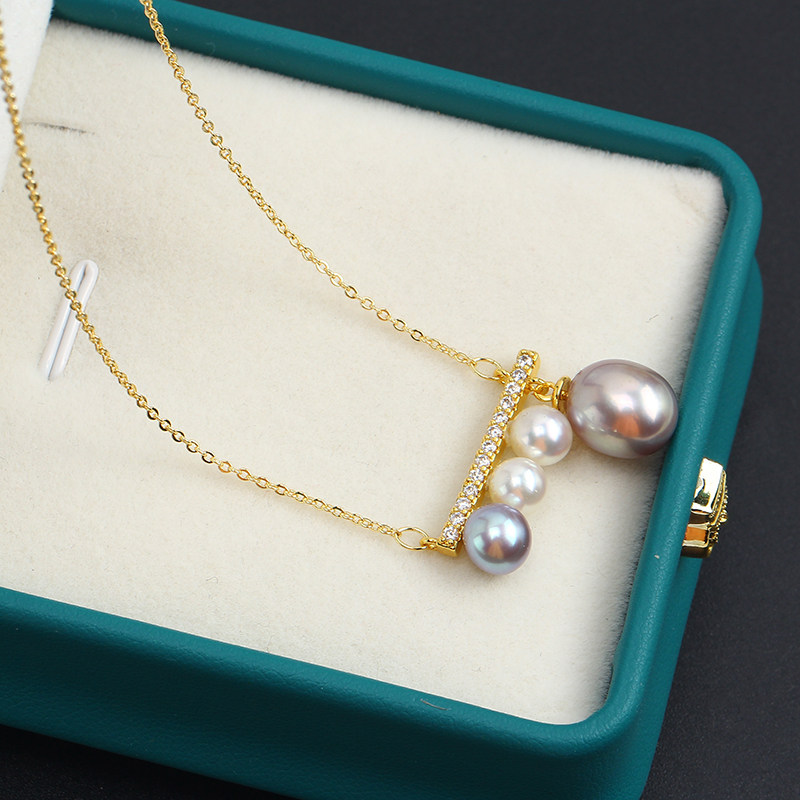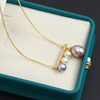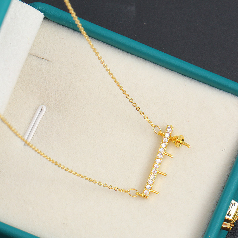 国产14k包金注金电镀保色精致多珠平衡木珍珠独特项链吊坠空托DIY
