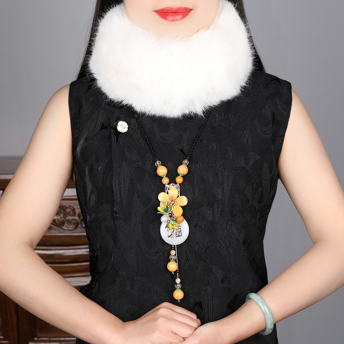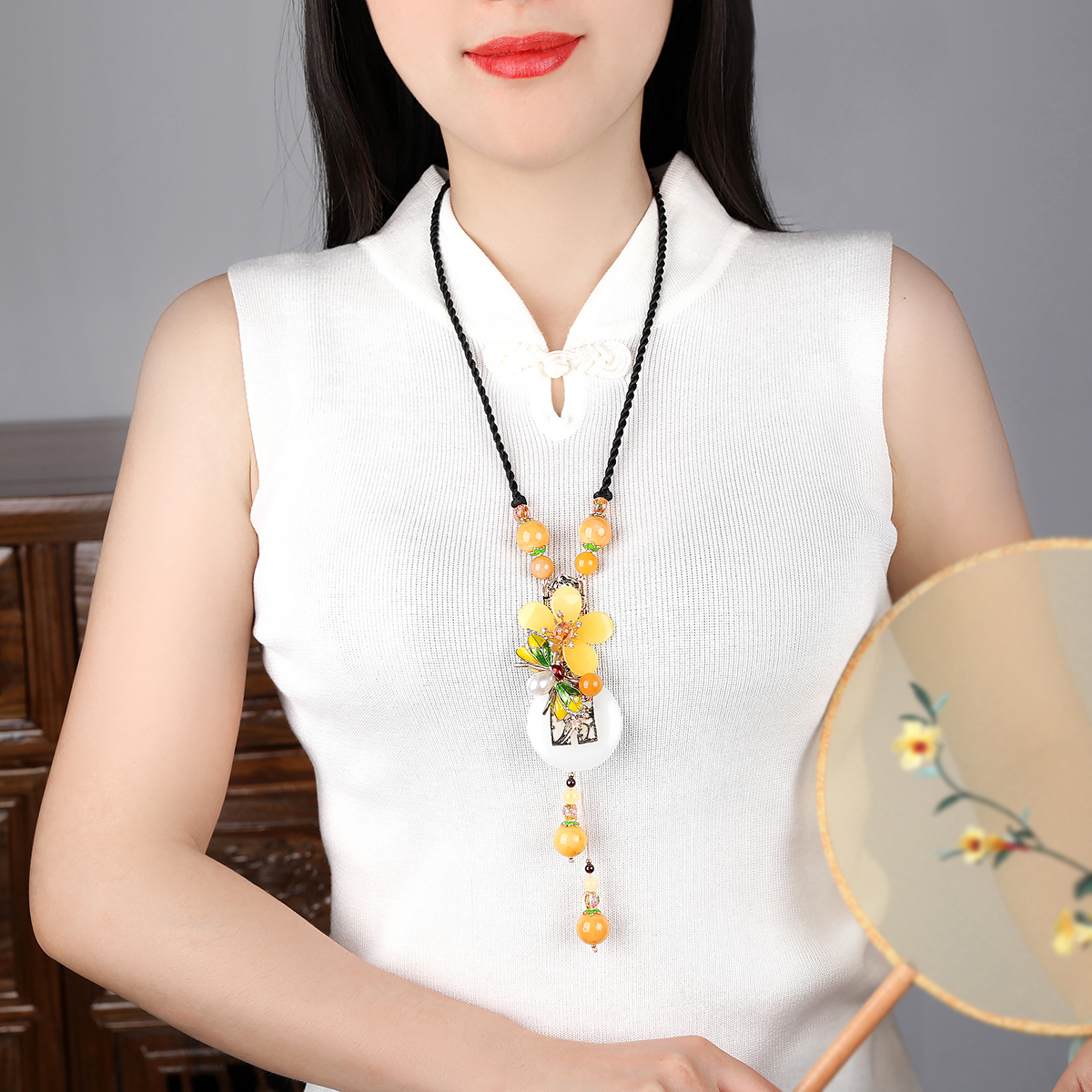 古风天然黄玉珠毛衣链配旗袍古风挂件中式长款项链原创挂饰可调节